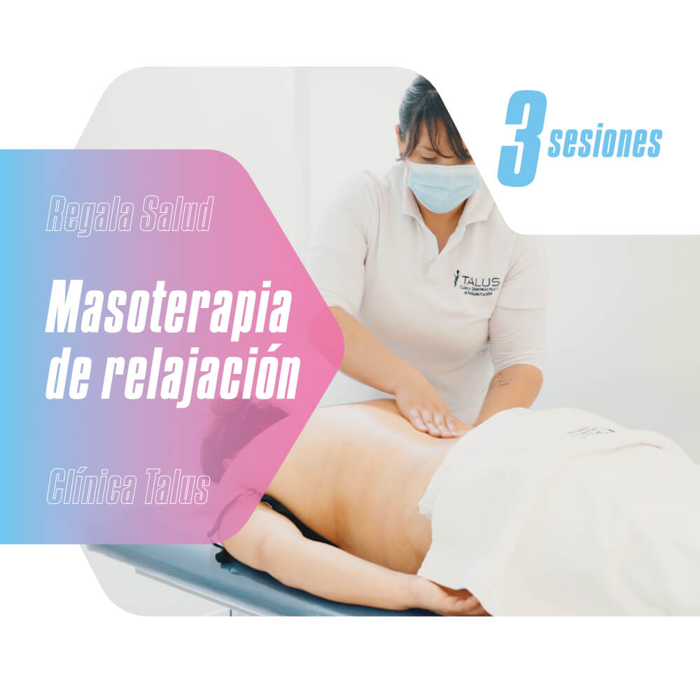 Consiste en la realización de masajes utilizando técnicas como: roces, amasamientos, percusión y fricciones en el sentido longitudinal de las fibras musculares con una baja velocidad, ritmo y presión suave, el objetivo es aumentar la temperatura muscular y provocar una relajación profunda a quienes se beneficien del masaje. Adicionalmente se realizarán técnicas de terapia manual como tracción grado I para la disminución del tono muscular peri articular y disminución del dolor.